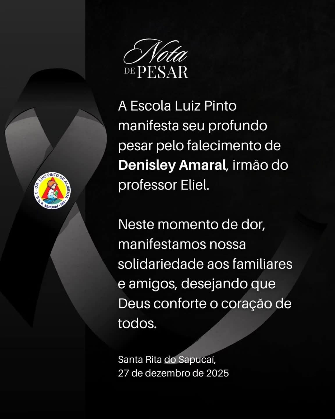 A Escola Estadual Doutor Luiz Pinto de Almeida manifesta seu profundo pesar pelo falecimento de Denisley Amaral, irmão do professor Eliel.