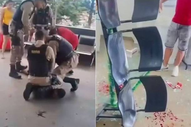 Segundo a PM, o agressor deverá responder por ameaça, dano ao patrimônio, agressão e resistência à prisão.