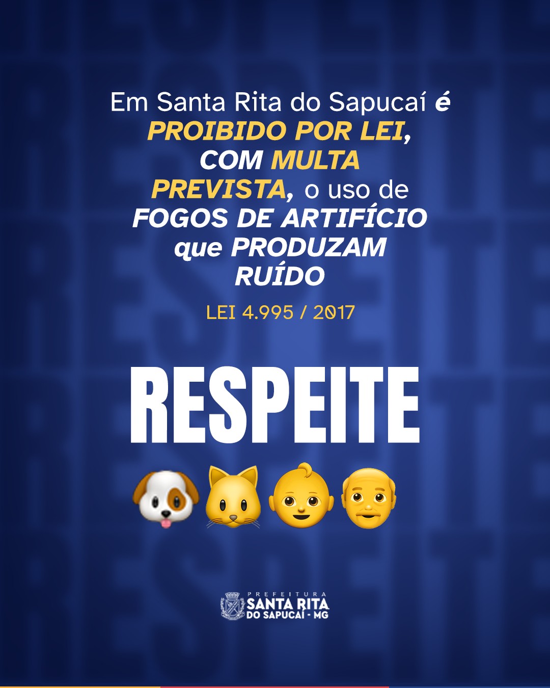 Para que a virada seja de alegria sem causar sofrimento, Santa Rita do Sapucaí conta com uma regra importante: pela Lei Municipal nº 5.630/2024, está proibida a fabricação, comercialização, manuseio, utilização, queima e soltura de fogos de artifício e artefatos pirotécnicos que emitam qualquer tipo de som (poluição sonora).