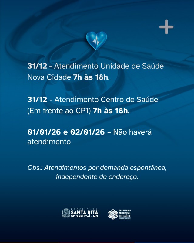 HORÁRIO DE ATENDIMENTO NAS UNIDADES DE SAÚDE NO FIM DE ANO