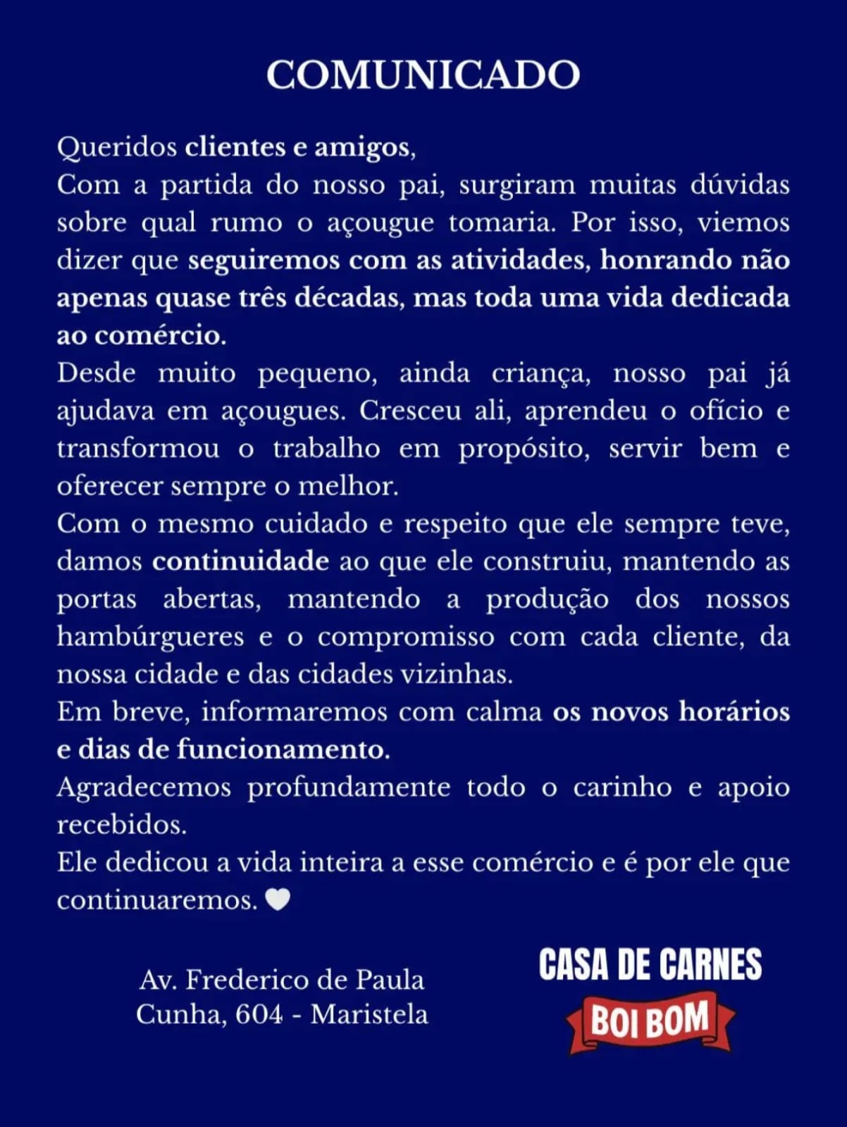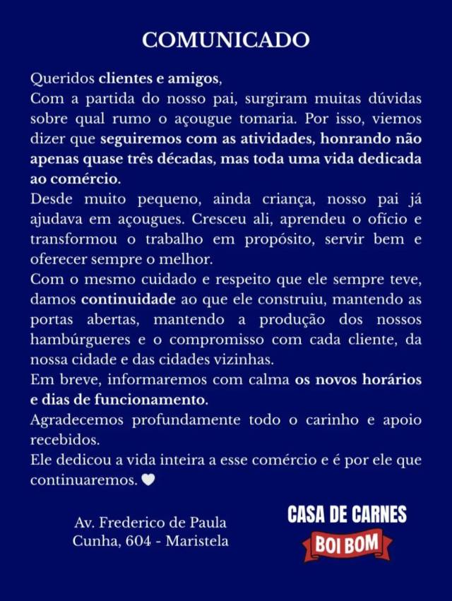Comunicado Casa de Carnes Boi Bom