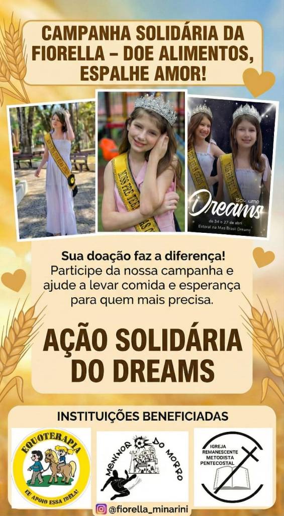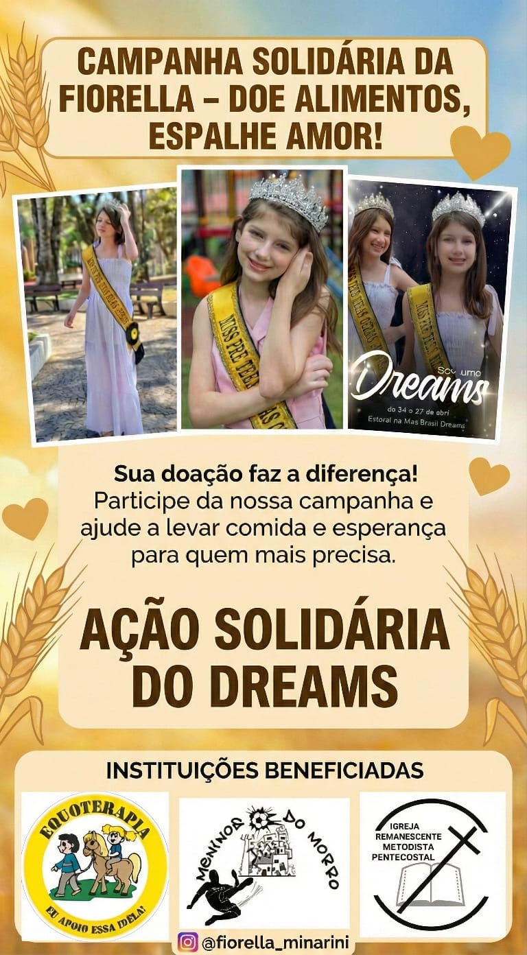#Solidariedade #AçãoSolidária #MissPreTeen #BelezaComPropósito #DoeAlimentos #MissDreams #CampanhaSolidária