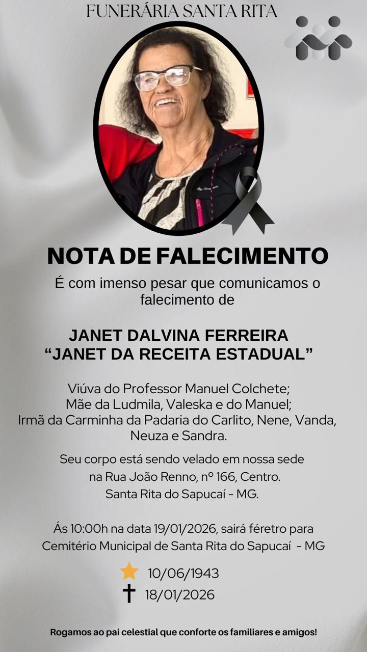 NOTA DE FALECIMENTO – Janet Dalvina Ferreira