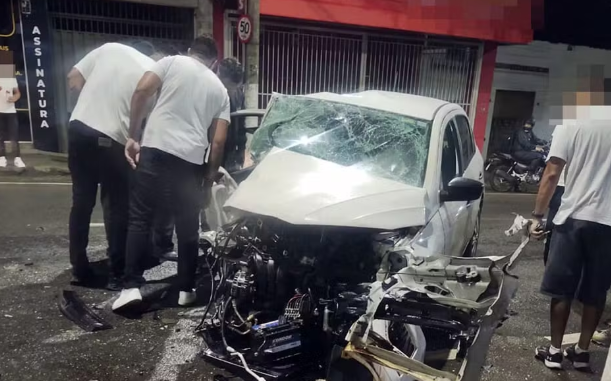 Testemunhas relataram que o veículo teria perdido o controle da direção antes de atingir o poste e, na sequência, colidido contra um carro que estava estacionado.