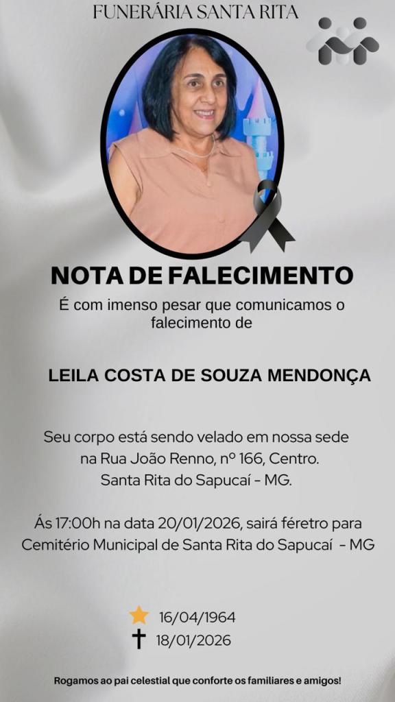 NOTA DE FALECIMENTO – Leila Costa de Souza Mendonça
