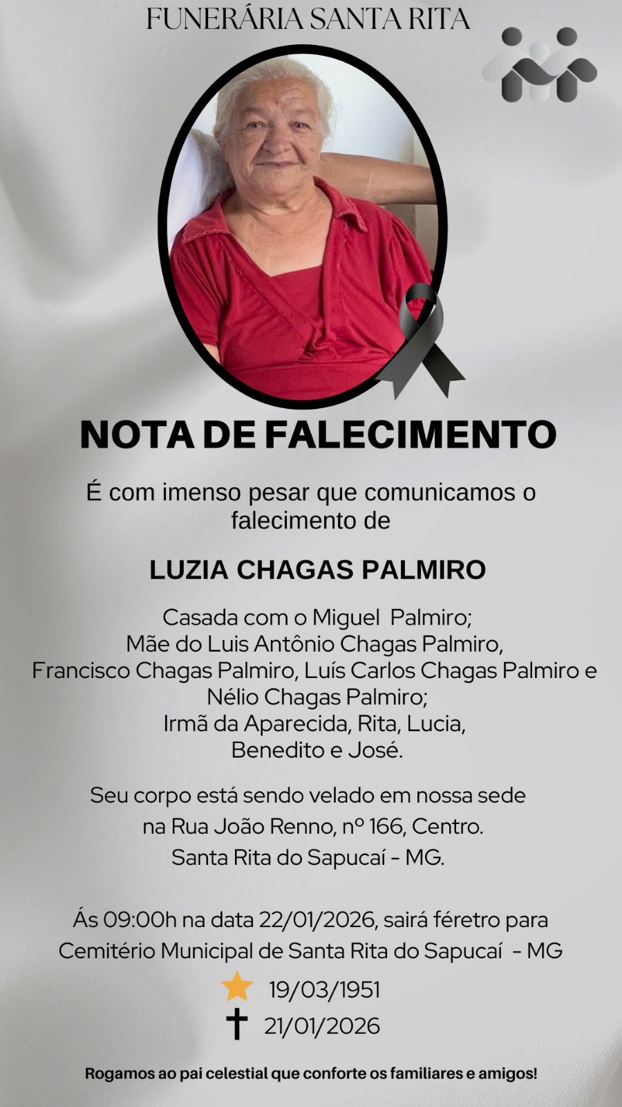 NOTA DE FALECIMENTO – Luzia Chagas Palmiro