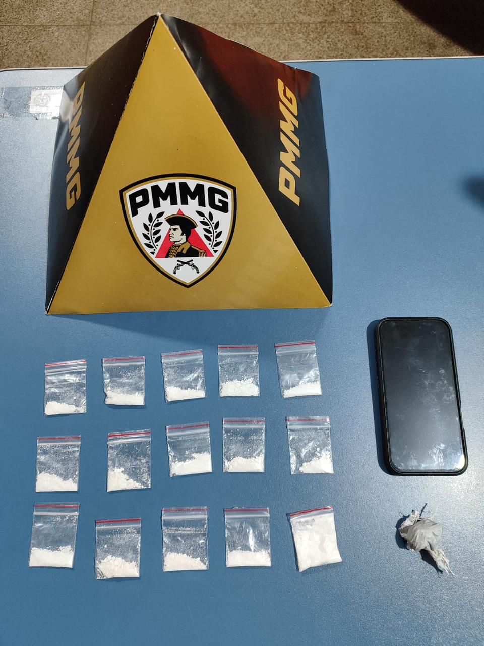 Em razão dos fatos, foi dada voz de prisão em flagrante delito ao autor pelo crime de tráfico de drogas, sendo ele conduzido à Delegacia de Plantão da Polícia Civil em Pouso Alegre, para as demais providências legais.