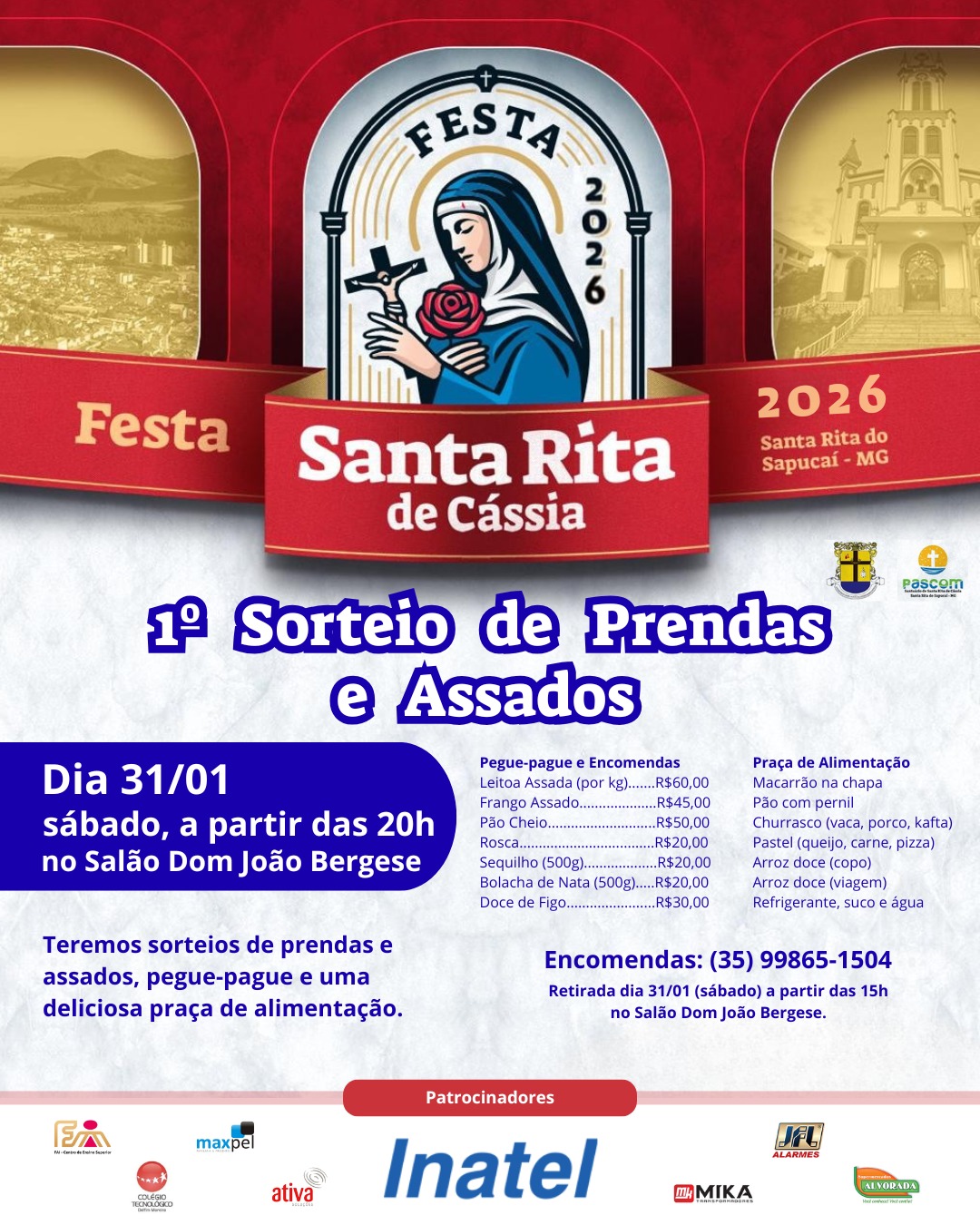 FESTA DE SANTA RITA – 1º Sorteio de Prendas e Assados