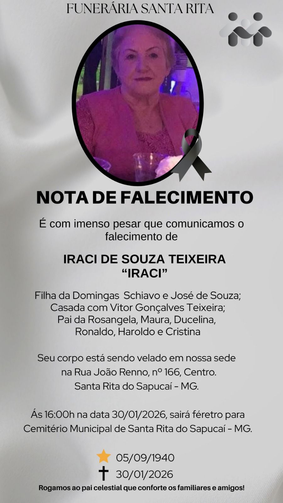 NOTA DE FALECIMENTO – Iraci de Souza Teixeira