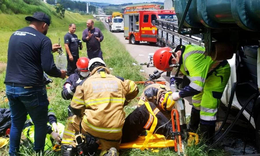 Colisão entre caminhões deixa dois feridos na Fernão Dias em Pouso Alegre