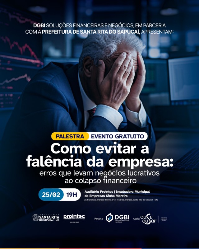 A DGBI Soluções Financeiras e Negócios, em parceria com a Prefeitura de Santa Rita do Sapucaí, convida empresários e empreendedores para a palestra: