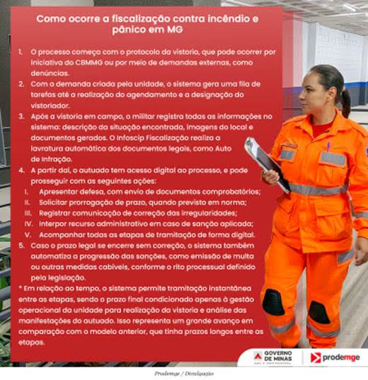 “Durante as vistorias, o CBMMG avalia critérios como licenciamento válido, respeito às medidas de segurança (que devem estar instaladas e funcionais), riscos iminentes à vida dos ocupantes ou frequentadores de espaços e edificações, entre outros”, detalha.