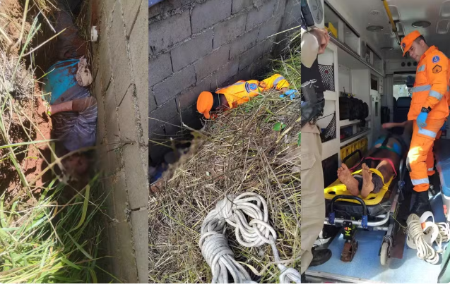 Na tarde de domingo (1º/03), um idoso de 94 anos foi resgatado pelo Corpo de Bombeiros após cair em um buraco de cerca de dois metros de profundidade, entre um barranco e um muro em construção, em Carmo de Minas (MG).