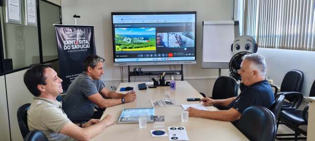 A convite do presidente do SINDVEL, Roberto de Souza Pinto, o prefeito Leandro Henrique Mendes e o secretário municipal de Ciência, Tecnologia e Desenvolvimento Econômico, Paulo Sérgio Ribeiro Silva, participaram, na última terça-feira (24), de uma reunião no sindicato para alinhar a revitalização da Praça Nelson de Azevedo Marques, marco zero do Vale da Eletrônica.