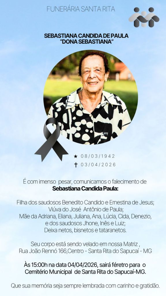 NOTA DE FALECIMENTO – Sebastiana Candida de Paula
