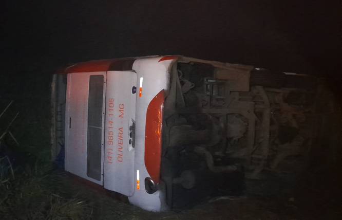 Ônibus com romeiros capota na BR-267 e deixa 18 feridos em Minas Gerais