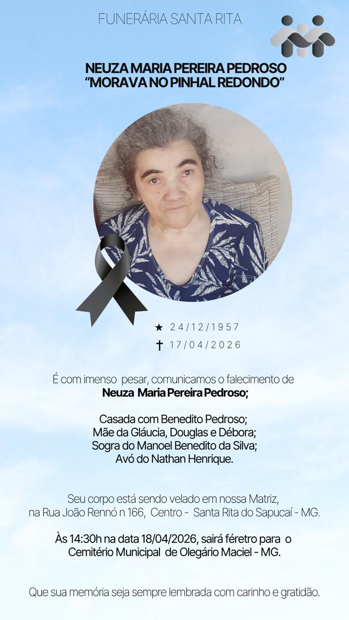 NOTA DE FALECIMENTO – Neuza Maria Pereira Pedroso