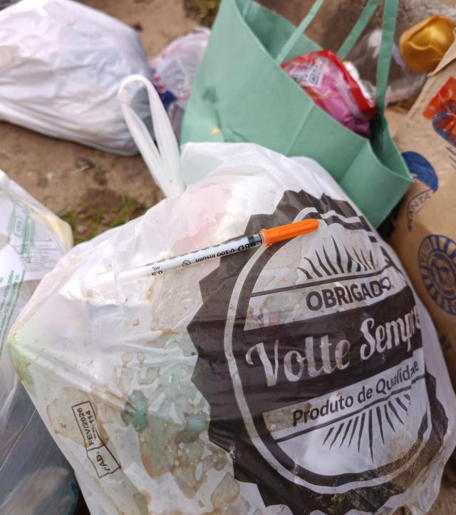 E hoje, mais uma situação preocupante: uma seringa foi encontrada no lixo doméstico.