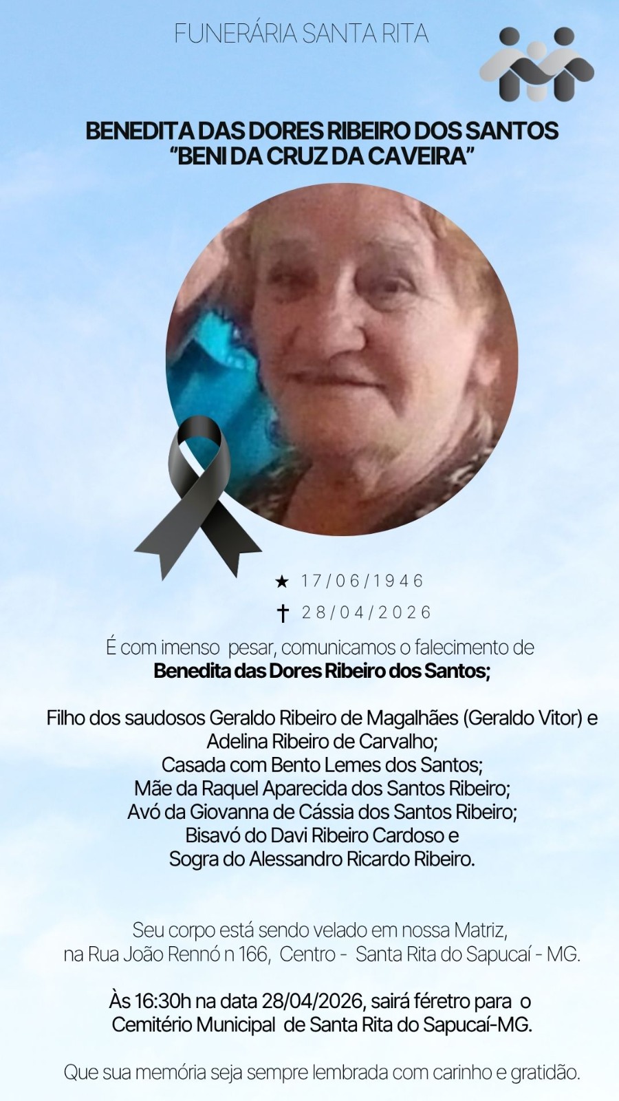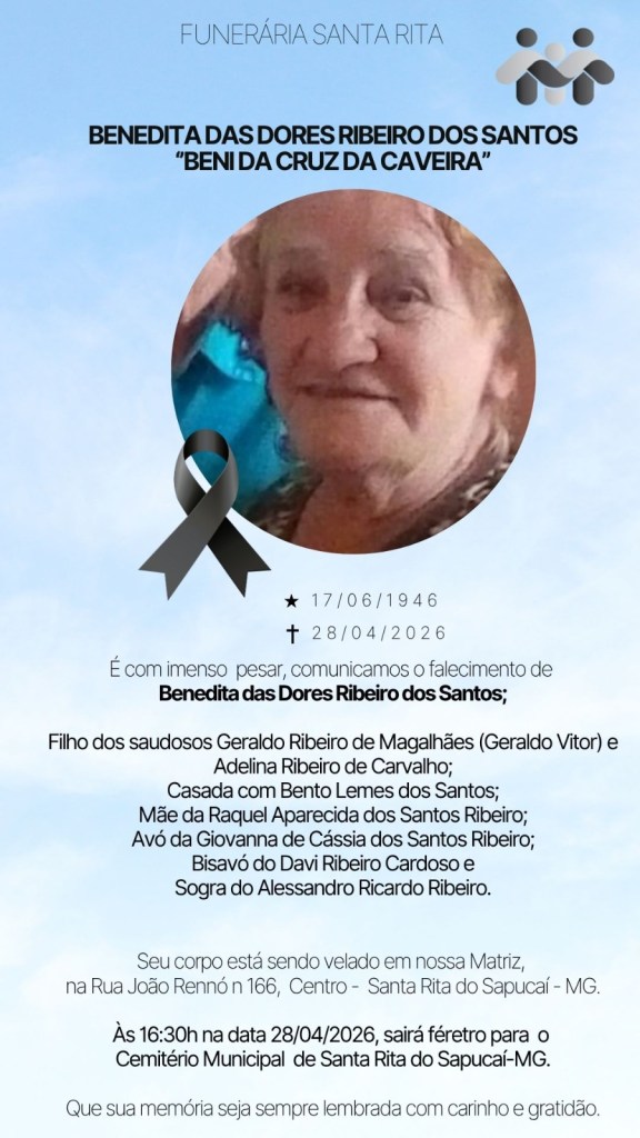 NOTA DE FALECIMENTO – Benedita das Dores Ribeiro dos Santos