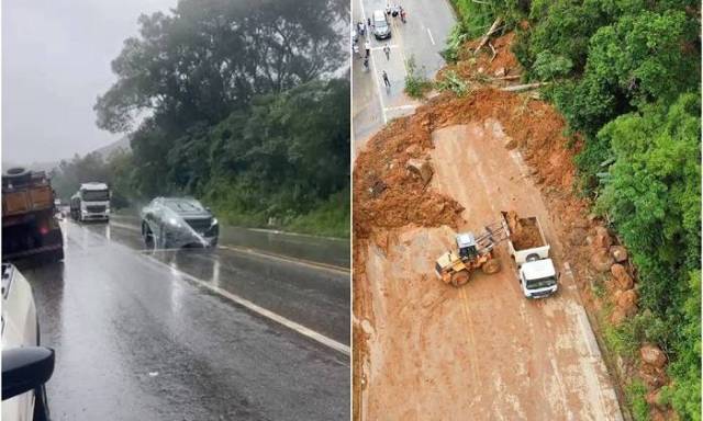 Antes disso, na sexta-feira passada, (6), a queda de um talude no km 64 fez com que um barranco soterrasse um sítio. Quatro animais morreram no local. Os moradores não estavam no local no momento.