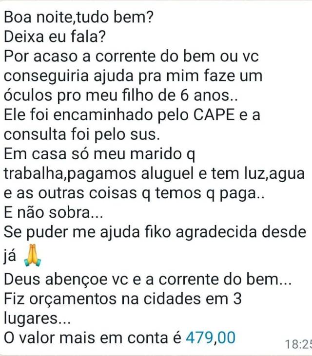Estamos precisando de ajuda para a realização dos exames, para compra de mais fraldas e para leite para poder atender às suas necessidades.
