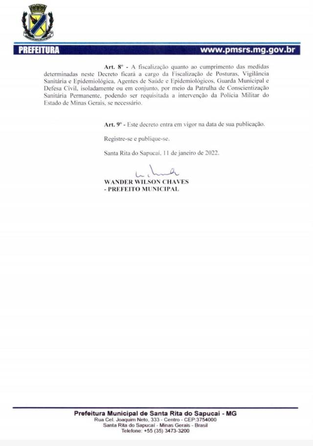 Boletim Epidemiológico de Santa Rita do Sapucaí, 04 de Janeiro de 2022