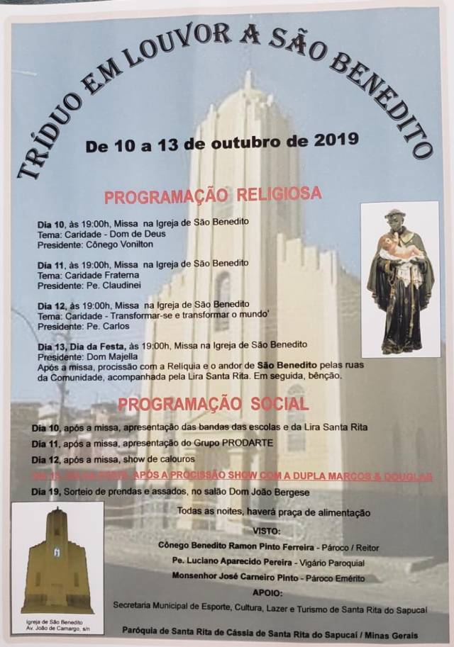 A missa será AMANHÃ(05) às 19h00 no Santuário Diocesano de Santa Rita de Cássia.