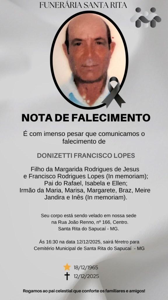NOTA DE FALECIMENTO – Donizetti Francisco Lopes
