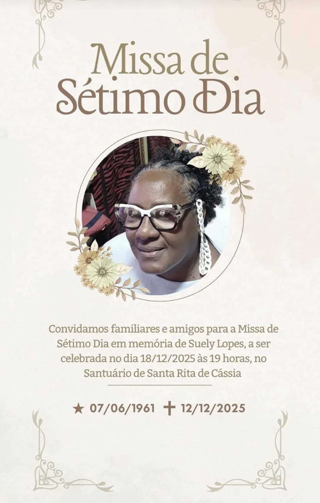 Irmã da Angela, Rosângela (Sindicato), Teka, Marcos Leontina Cristina, Rita e dos saudosos Sebastião, Miguel Pedro, José Maurício, mãe do Gustavo, Zuleika e Daniela deixa netos e bisneta.