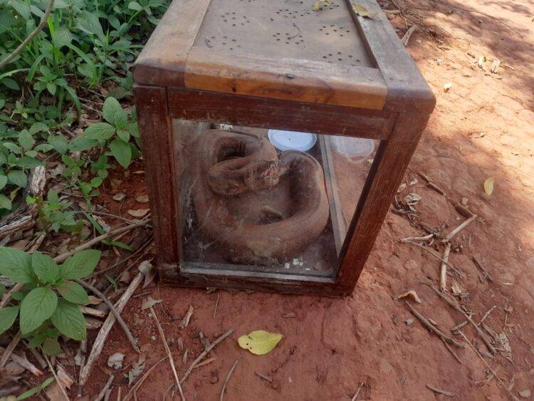 A jiboia foi encontrada em um buraco em um barranco nas proximidades da Fazenda Santo Antônio do Paracatu.