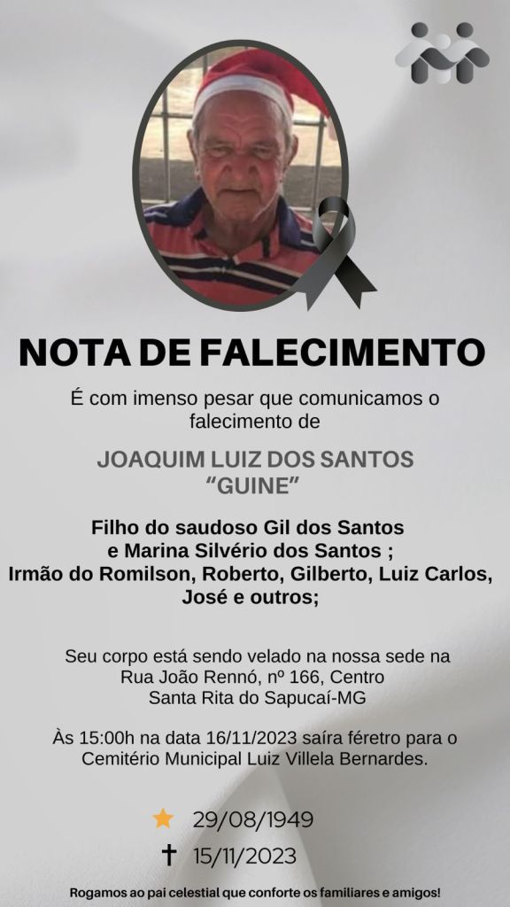 A imagem da nota é fornecida pela Funerária Santa Rita.