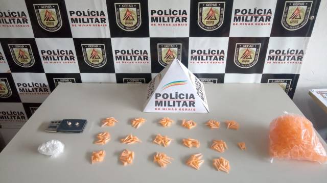 Durante a abordagem de dois indivíduos em uma motocicleta, foram encontrados 26 pinos de cocaína com um deles.
