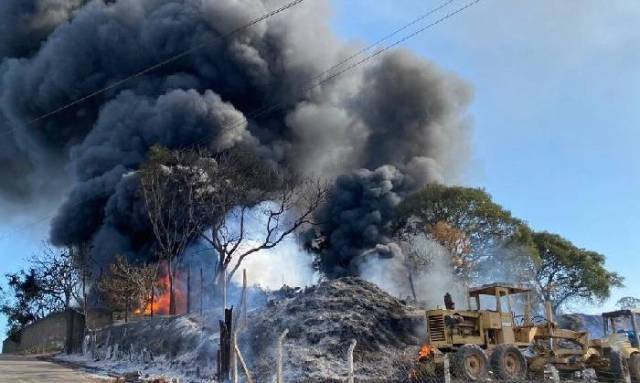 Um depósito de uma empresa de sucata e terraplanagem, localizado no bairro Chácara, em Poços de Caldas, na zona leste do município pegou fogo na tarde desta terça-feira(19).